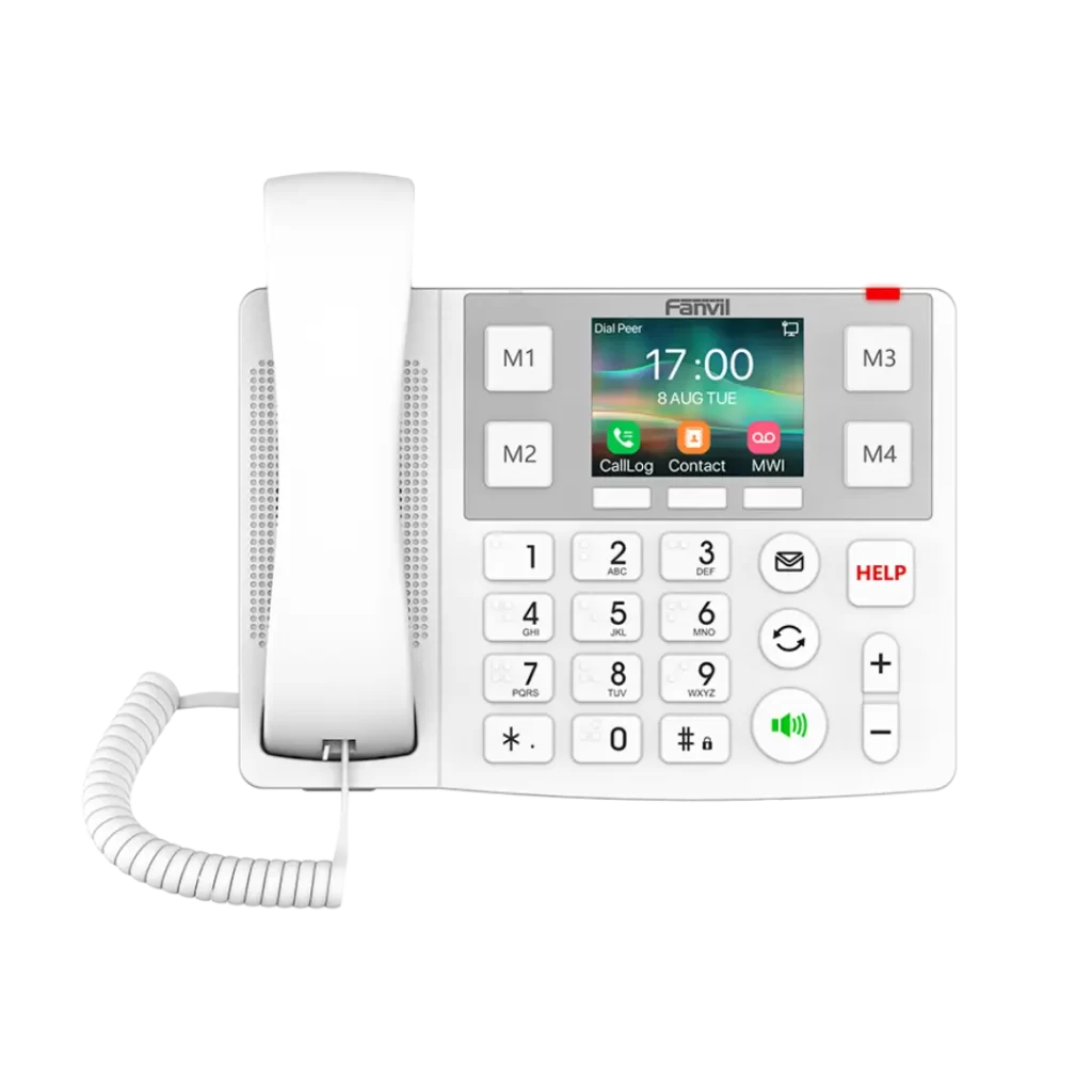 Fanvil X305 is a big button IP phone designed for nursing homes, hospital, and other scenarios. It features a 3.5-inch color screen and big buttons, supporting 2 SIP lines and PoE power supply to offer user-friendly experience. X305 has built-in 2.4GHz & 5GHz Wi-Fi, and supports 433MHz wireless emergency buttons, providing an efficient and high-quality communication experience for seniors.