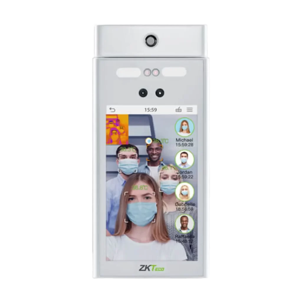 The RevFace15[TI] is an advanced facial recognition and temperature screening terminal that can detect up to