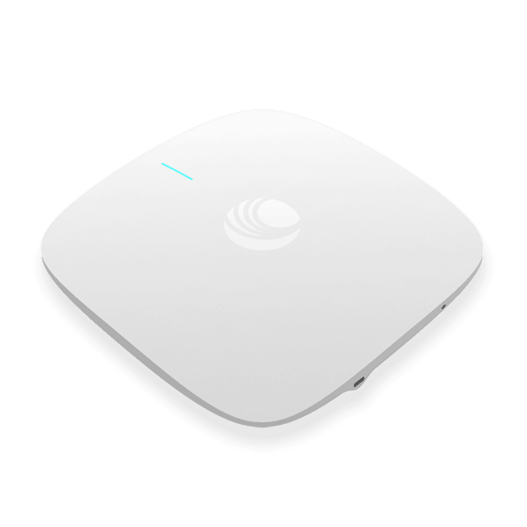 The plenum-rated cnPilot™ e410 is a powerful indoor access point featuring 2×2 MU-MIMO and up to 25 dBm transmit power. With support for 80 MHz channels on 5 GHz, it delivers excellent coverage and capacity for highperformance wireless networks. Ideal for dense indoor environments needing reliable and scalable Wi-Fi