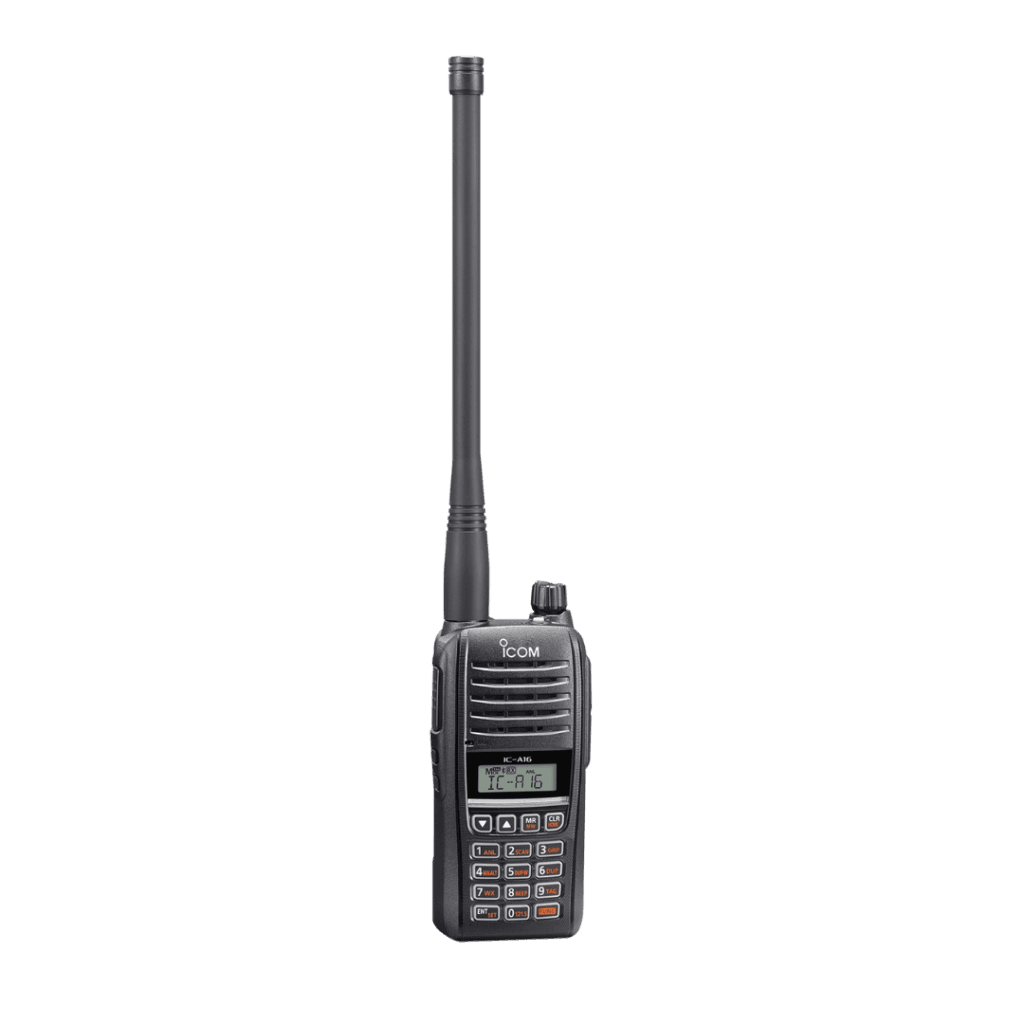 The ICOM IC-A16 is a high-performance aviation radio built for professionals who demand clear, reliable communication in the air. With both 8.33 kHz and 25 kHz channel spacing, it ensures efficient and precise communication. The IC-A16 delivers 1500 mW of loud audio for clear sound even in noisy cockpits, while the built-in Bluetooth® functionality offers hands-free convenience. Its compact, waterproof design (IP67/54) and MIL-STD-810- G compliance ensure durability in all conditions, and the backlit LCD and keys make nighttime operation a breeze. Compatible with third-party aviation headsets, the IC-A16 is the ideal companion for any mission, providing confidence in every flight.