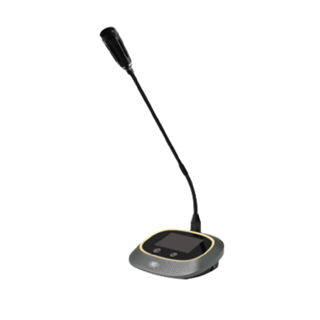 operation, and a 3.5-inch full-color touch screen for intuitive control. Supporting 63+1 simultaneous interpretation channels, dual headphone jacks, and voting functions, it ensures seamless multilingual communication. With PC software control, chairman priority, web-based management, and customizable microphone settings, it provides a professional and efficient meeting experience.