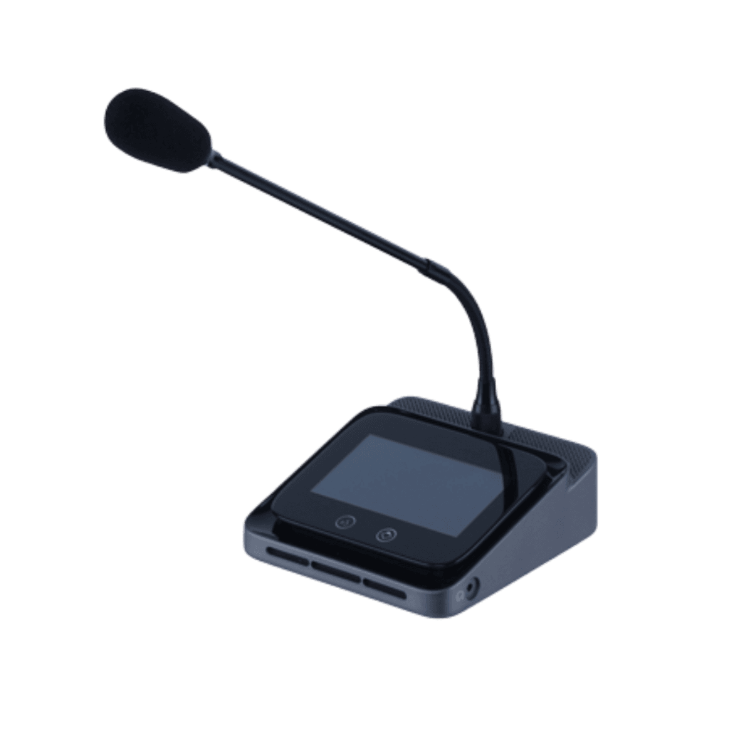 This high-performance conference system delivers 48kHz uncompressed audio transmission with capacitive touch buttons for silent operation and crystal-clear sound. Featuring a 4.3-inch full-color touch screen, 63+1 simultaneous interpretation channels, and dual headphone jacks, it ensures seamless multilingual communication. With PC software control, voting functions, chairman priority, and web-based remote management, it offers a professional and efficient meeting experience.